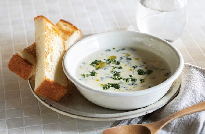 ギリシャヨーグルトはそのまま食べても美味しいですし、和風、洋風いろいろな料理に使えるんですね。この料理を食べると髪も肌もきれいになりそうで、うれしくなりますね。今はメイクを重ねる時代から、ナチュラルに美しいを求める時代ですから。