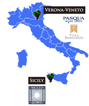 パスクア社とシチーリア島有数の生産者のひとつであるファジオ社との業務提携による「メッツォジョルノ・プロジェクト」。1950年、シチーリア島西部で家族経営の小さなワイナリーとしてスタートしたファジオ社は、シチーリア土着のブドウ品種(ネーロ・ダヴォーラ=黒ブドウ、インソリア=白ブドウ)の可能性を追求。600haもの広大な畑を所有し、近代的な生産設備を積極的に導入することで、国際的に通用するワイン造りに励んでいます。 |