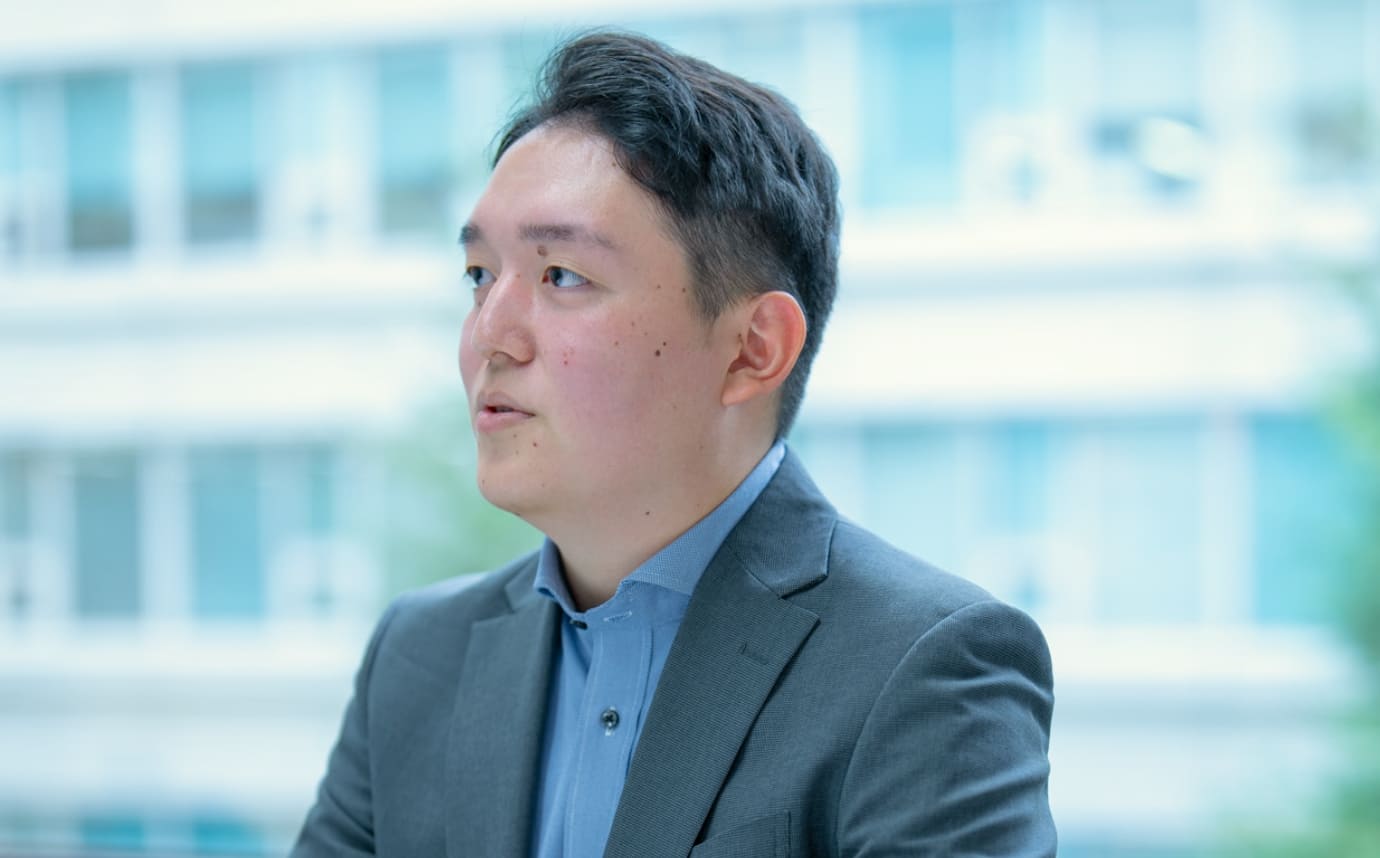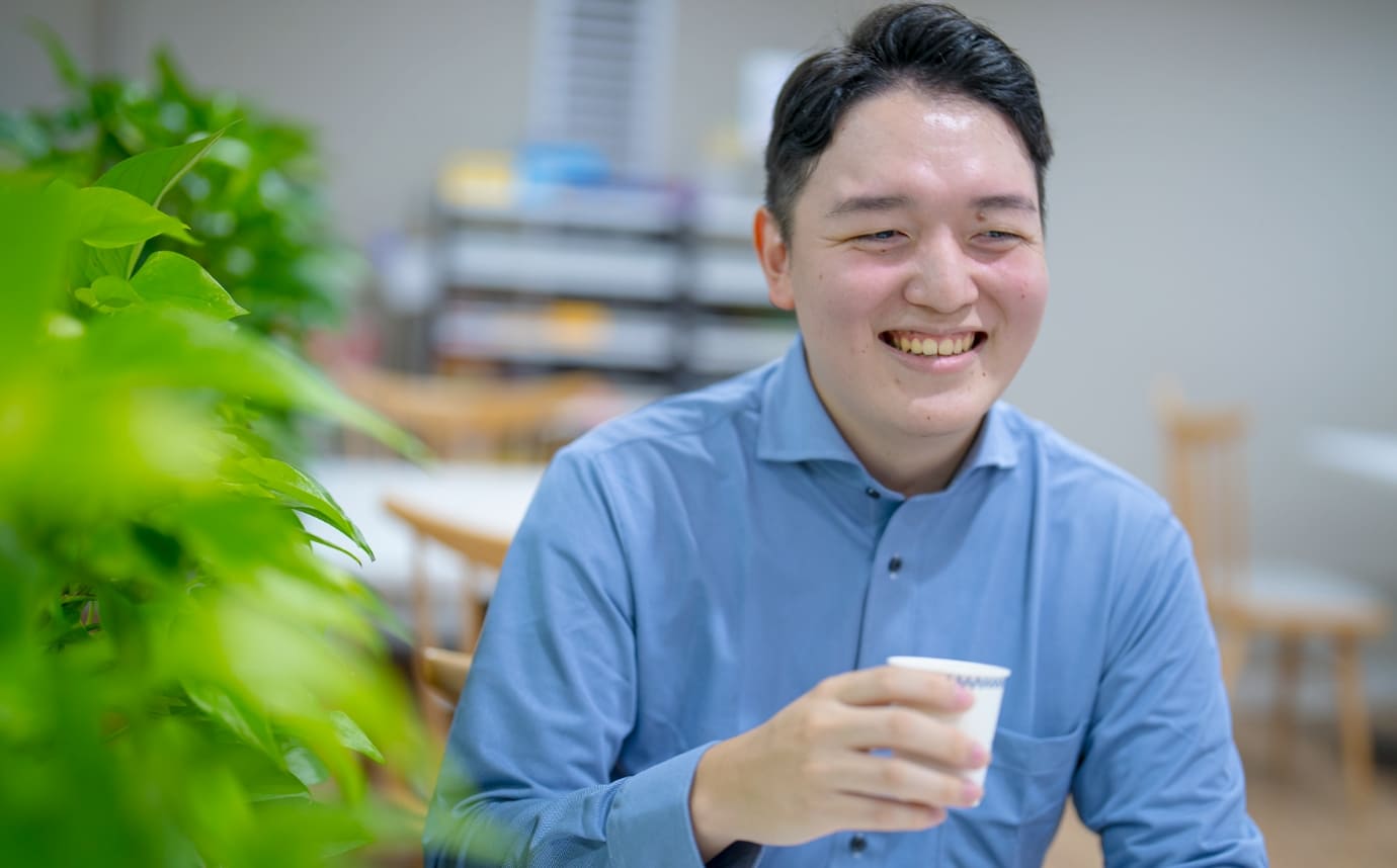 2023年入社。体を動かすことが好きで、幼少期から学生時代にかけて器械体操や和太鼓、野球、テニスなどに打ち込んできた。美味しいものとお酒が大好きで、仕事の後や休日には会社の同僚や友人と外食に行くことが多いという。出張のときには先輩と連携し、現地のグルメチェックは欠かさない。