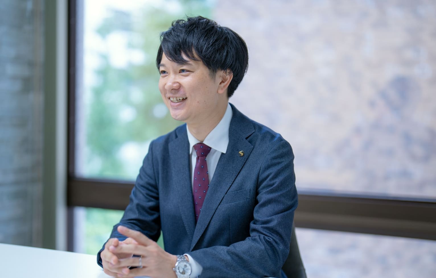 初めての就職では、人の暮らしに欠かせない衣食住に関わる仕事がしたいという気持ちがあり、学生時代に都市環境学を専攻していたこともあって、不動産系の会社で戸建ての営業をしていました。仕事は好きだったんですが、勤務時間が長く休みも少なくて、かなりハードな環境だったんです。5〜6年ほどが経った頃、これを一生続けていくのは難しいと考え、転職を決意。衣食住という軸は変わらず持ち続けていましたが、転職するからには自分の好きなことで長く働き続けたいという思いがありました。そこで自分の大好きな食べること・飲むことにフォーカスを当て、食品関係の企業を調べているときに国分のことを知ったんです。歴史の長い企業なので安心感があるし、「信用」を大事にするという社是は自分が前職で大切にしてきた価値観とも一致していました。メーカーと小売をつなぐ卸という仕事は、人と関わる機会が多いからこそ信用第一。それであれば、人との信用を積み重ねて成果につなげてきた前職での経験も役に立つはずだと考えました。そう直感した通り、面接を通じてお会いする社員の方々はみんな穏やかで真摯な雰囲気で接してくれて、「信用」という社是が一人ひとりにちゃんと浸透しているんだということが感じられ、ここでなら一生をかけて働き続けられると確信しました。面接は緊張してほとんど覚えていませんが、とても話が盛り上がったことだけは記憶に残っていて、多分そこが評価されて内定をいただけたんだと思います(笑)。