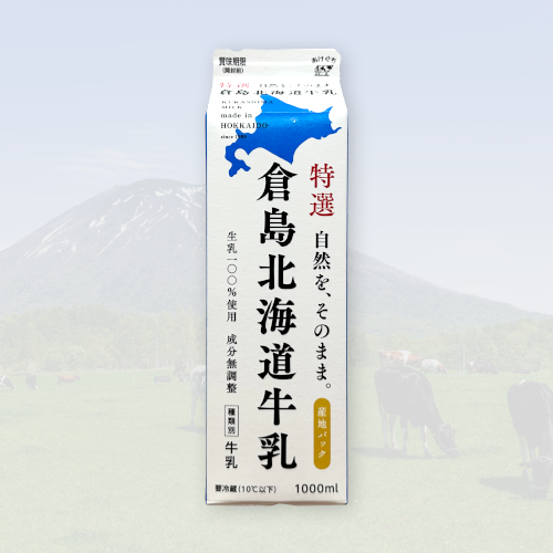 当社取扱いの北海道牛乳は、北海道小樽近郊の倉島乳業(株)の仁木工場で近郊酪農家の生乳を新鮮なうちに加熱殺菌処理し『産地パック』されることで、北海道産の風味豊かなコクのあるおいしい牛乳を毎日みなさまの食卓にお届けしております。